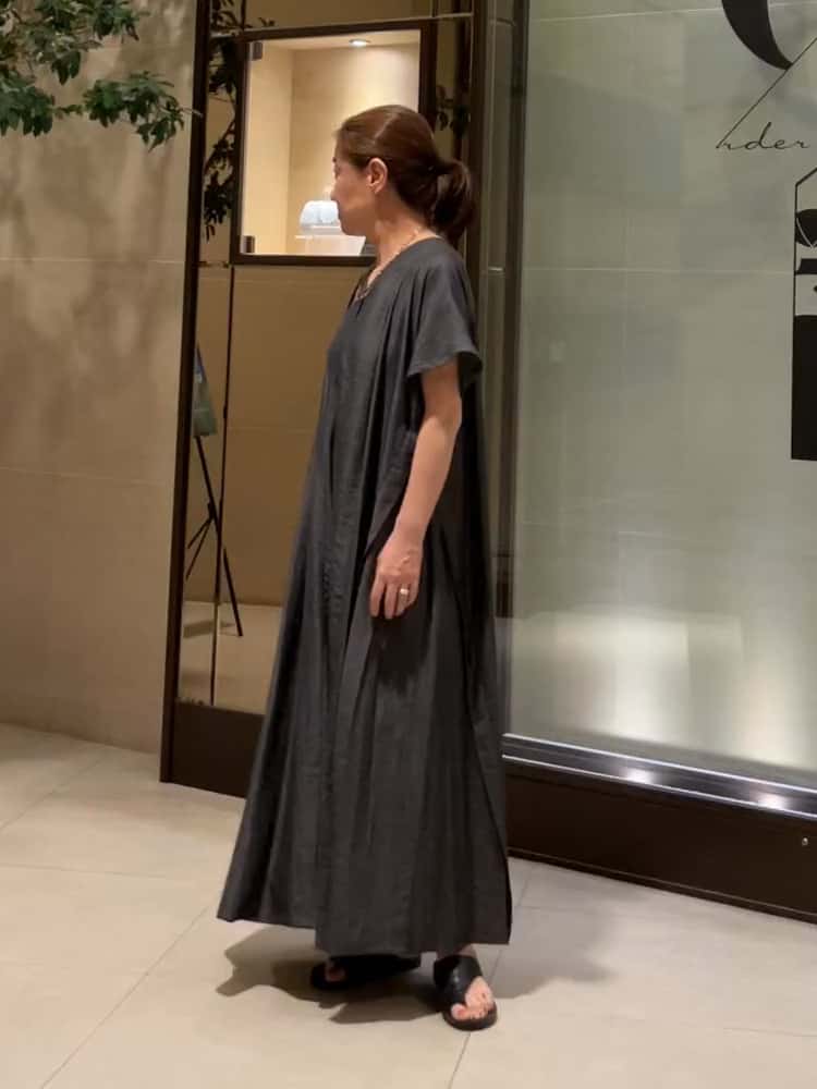 軽くて涼しいシャンブレー素材のワンピースは、ナチュラルなシワ感とドライタッチで着心地バツグン。裾までしっかりフレアが入っていて、動くたびに揺れるシルエットがポイントです。
