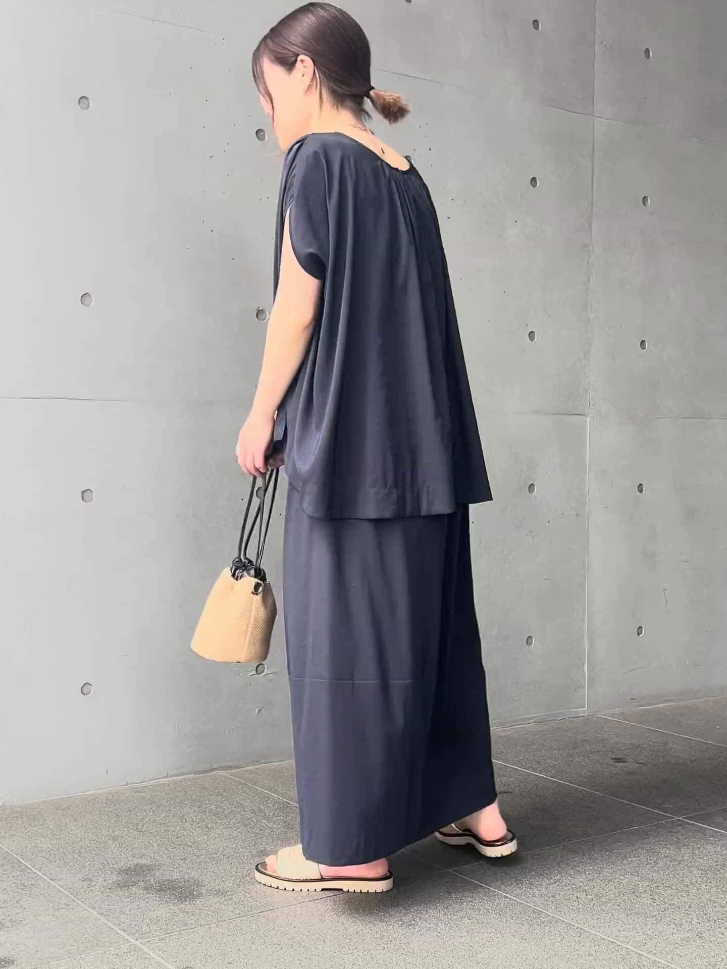 スカートはタック&ギャザーで丸みを出しつつ、後ろはすっきり見えを叶える美シルエット。セットでも単品でも着回せる、夏の優秀アイテムです。