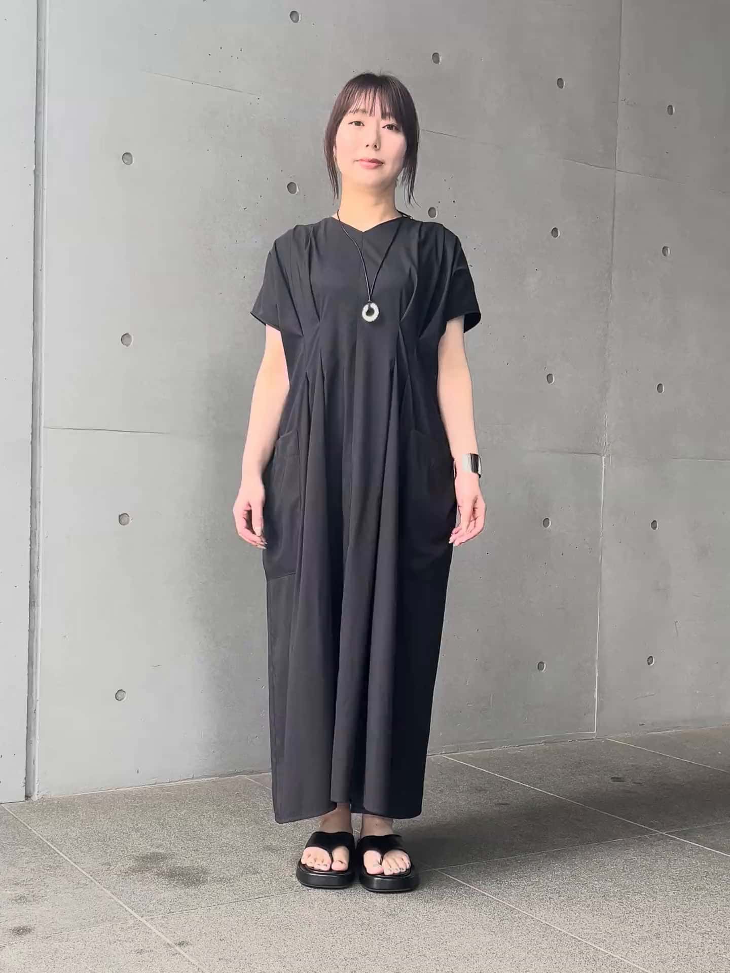 Vネックとドロップショルダーが涼しげで、大きめポケットがさりげないアクセントに。上品さとラクさ、どちらも叶える、大人の夏ワンピです。