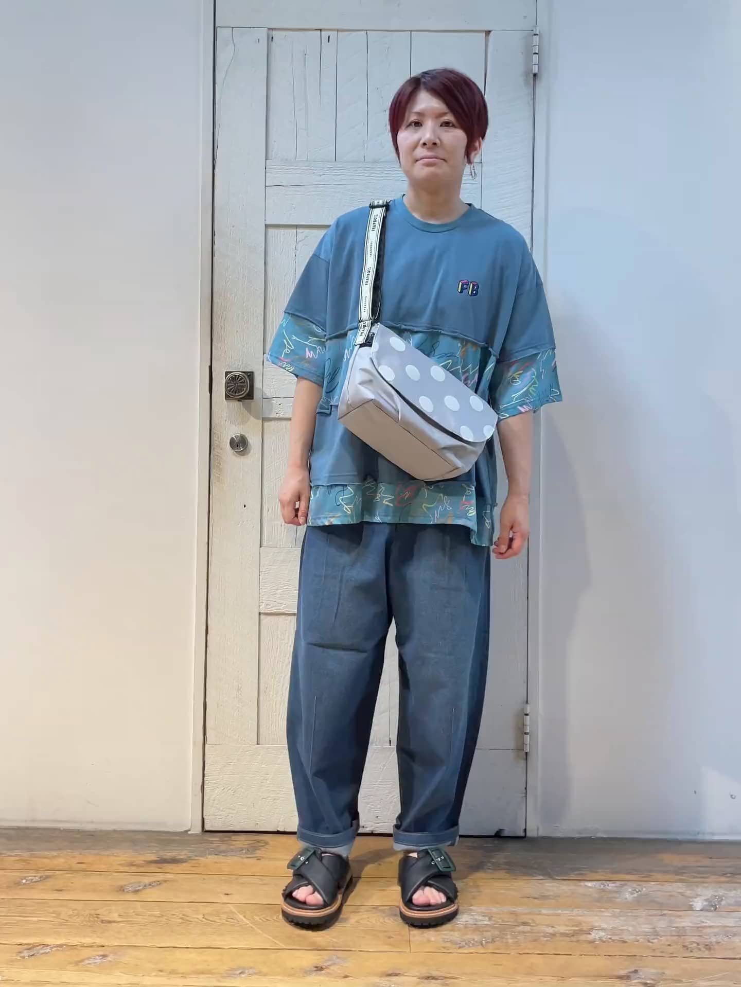 着用感 : オリジナルのプリント生地と無地の生地の切り替えが目を引きます。