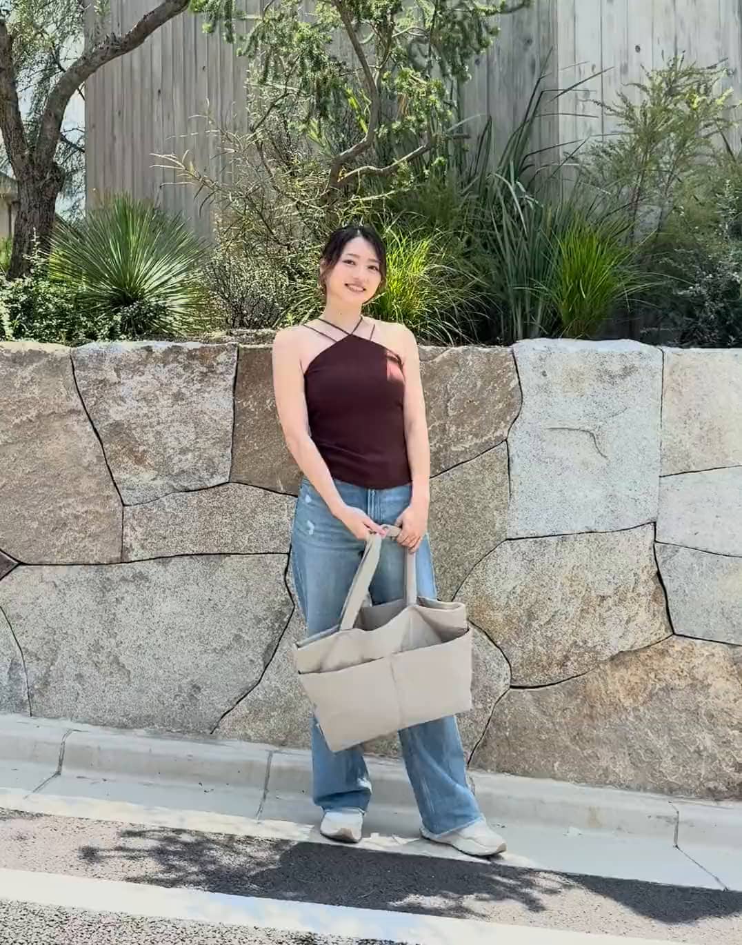 トップス:0(S~M)サイズストラップと斜めのカットが特徴的で、前から見ても後ろから見てもシルエットが綺麗。リブ素材でラインを拾い過ぎないのも嬉しいポイント。
