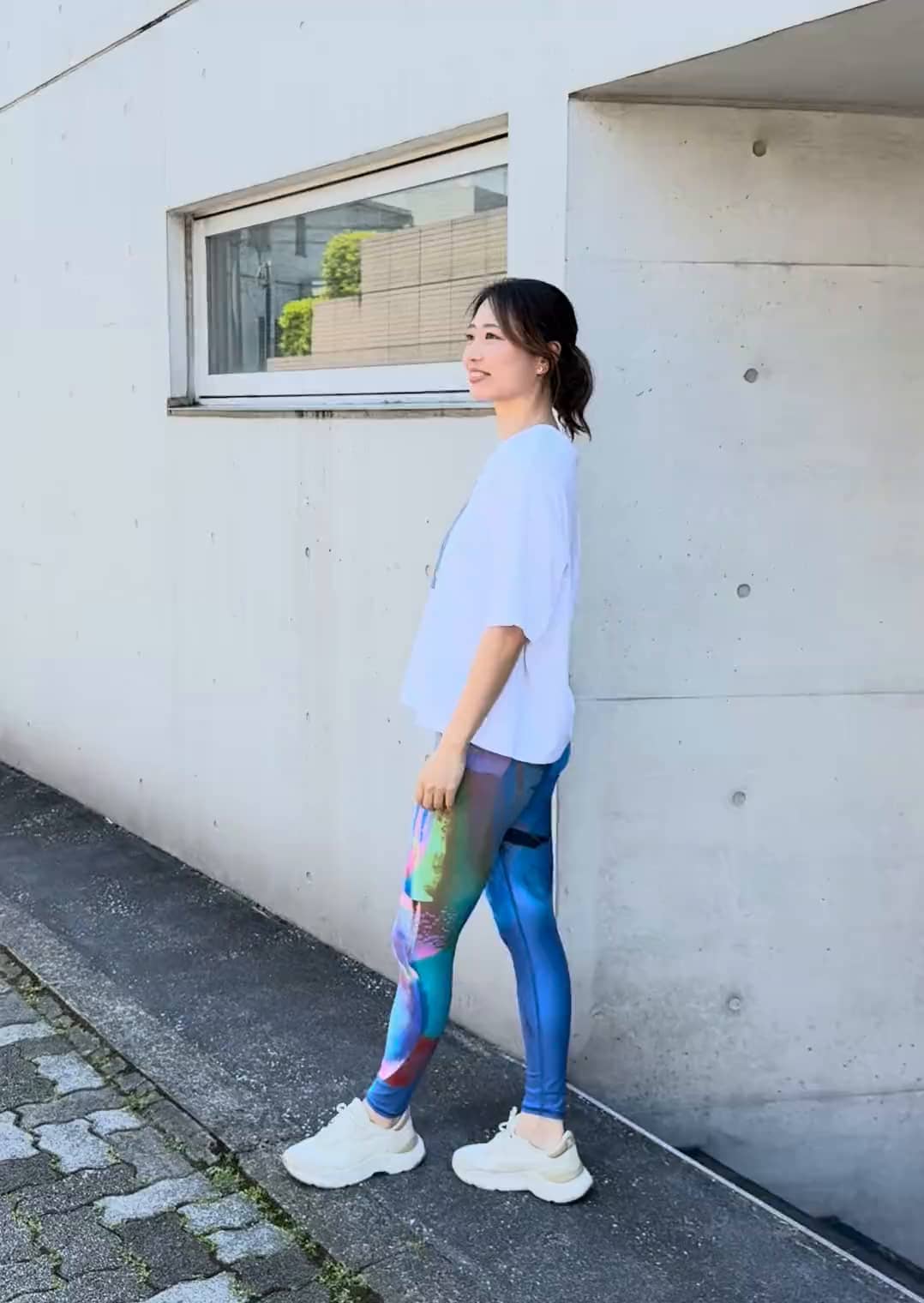 スーパーハイライズのレギンスがお腹を覆ってくれるので、ビッグシルエットのトップスと合わせても冷えの心配がないのも嬉しいです。