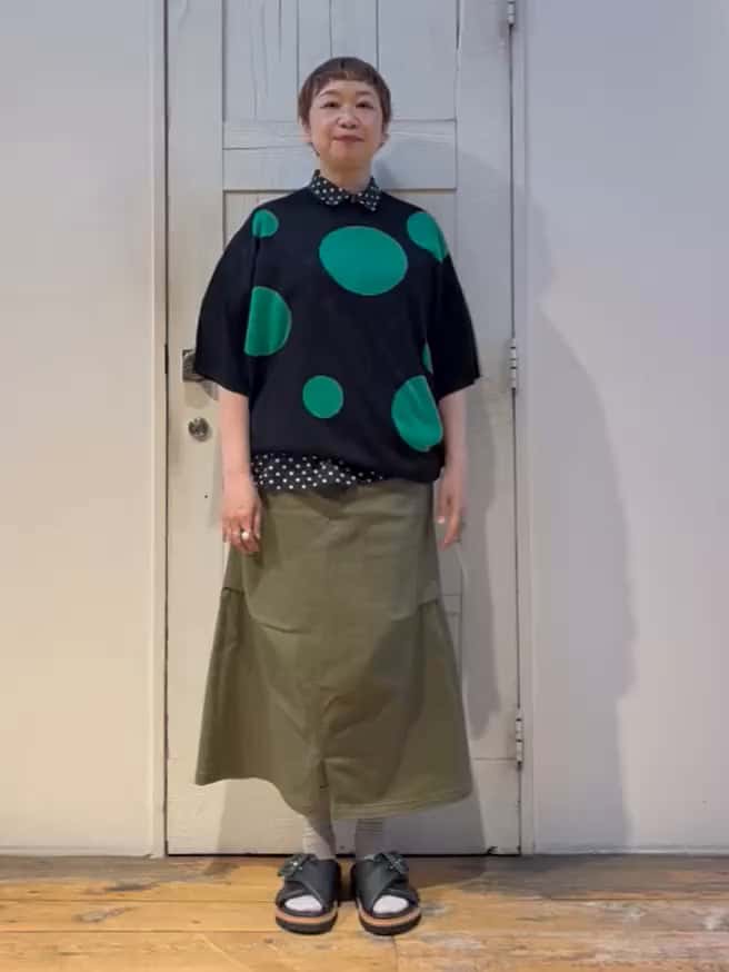 ドット、ストライプ、ギンガムチェックの切り替えを入れ組み合わせたフラボアらしい1枚です。