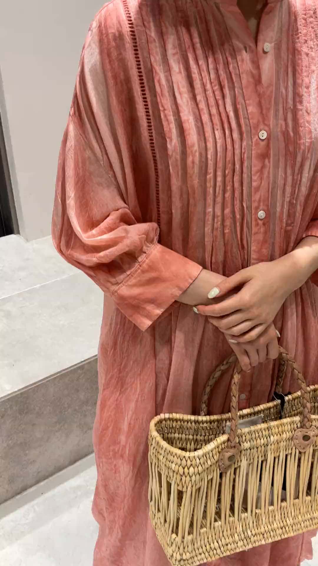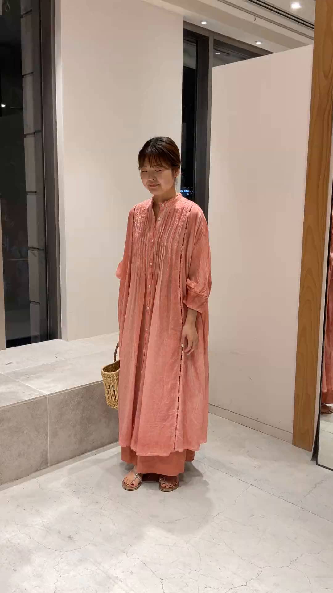 今年も人気のピグメントダイワンピース。鮮やかなピンクでワントーンコーディネートにしました🪸ハシゴレースが落ち感を出してくれているのでIラインが際立ちます。お袖のふんわりとしたディテールも可愛いポイントです。