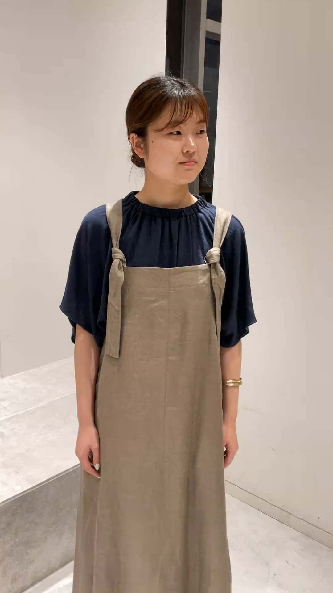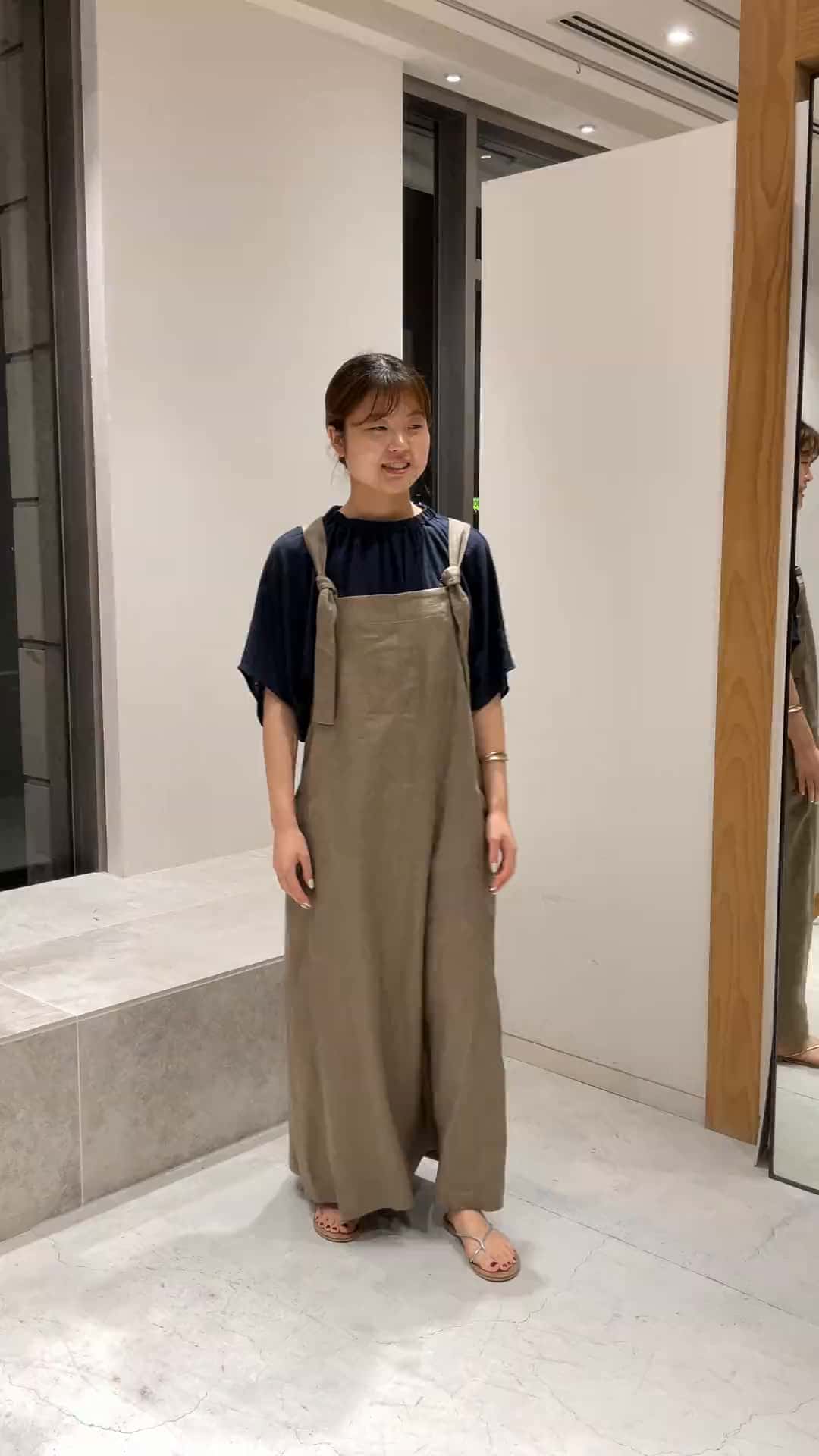 Aラインのスッキリとした大人のジャンパースカート。トップスもスカートもリネンで合わせて涼しく、ラフにお洒落に。