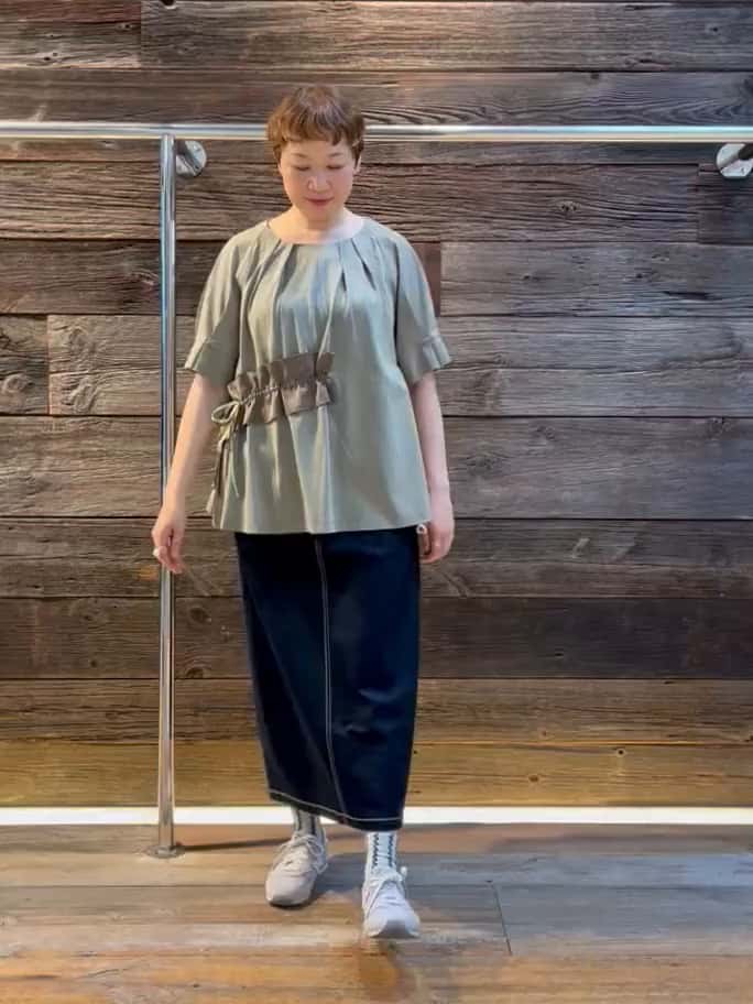 着用感 : どんなトップスとも合わせやすい、オールシーズン着回せるデニムスカート。