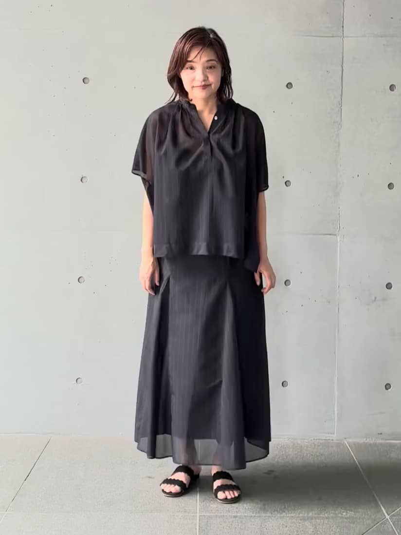 上下ともシンプルながら着映えするので、セットでも単品でも重宝しそうです◎