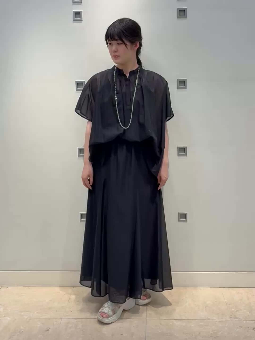 程よい透け感で涼しげなセットアップ。ボリューム感のあるデザインで着映えします。単品でも着回しのできるアイテムです。53FFB081 2/② ブラック53FFS071 2/② ブラック