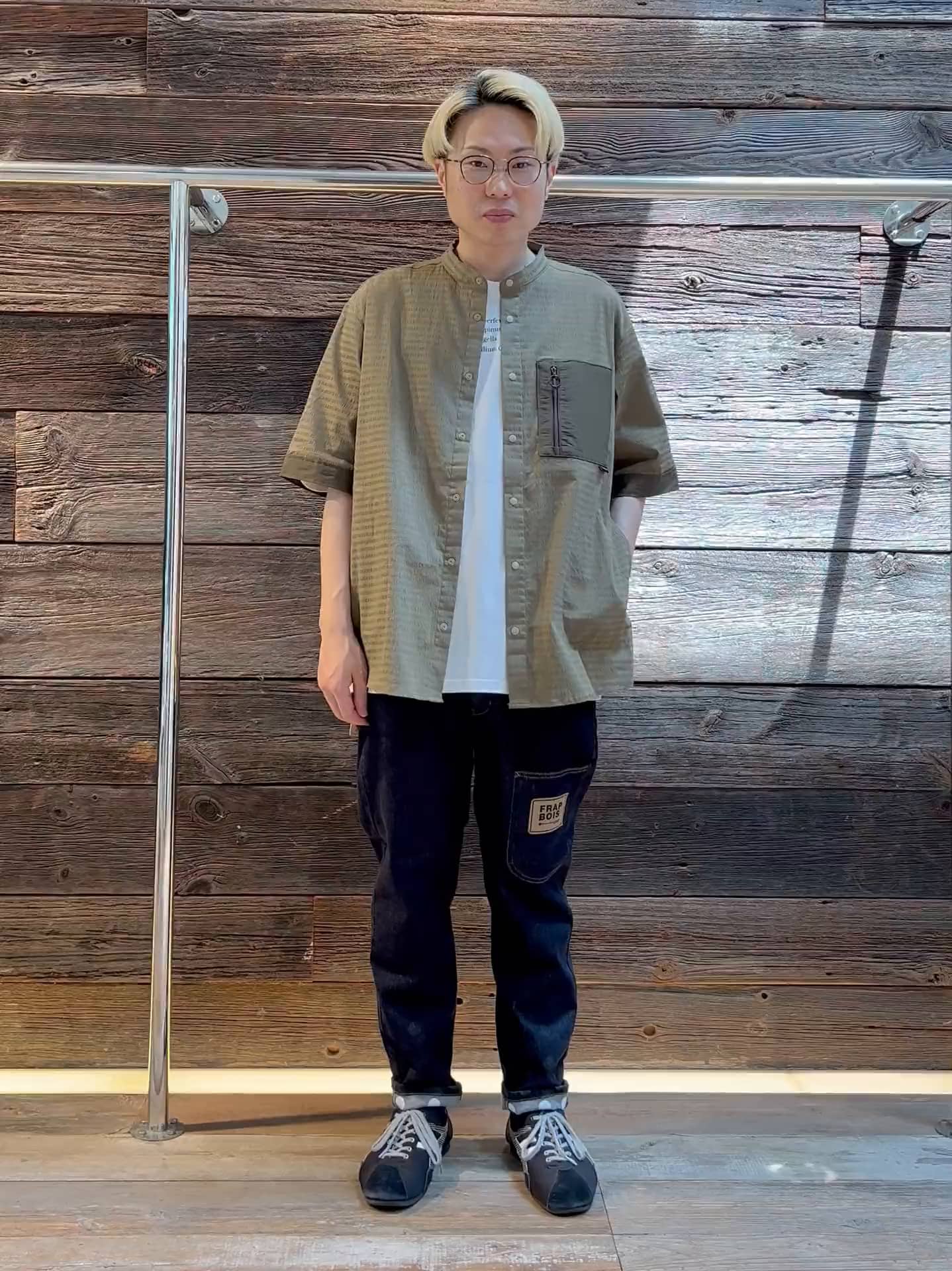 着用感 :さらっとした肌触りのサッカー素材を使ったシャツ。