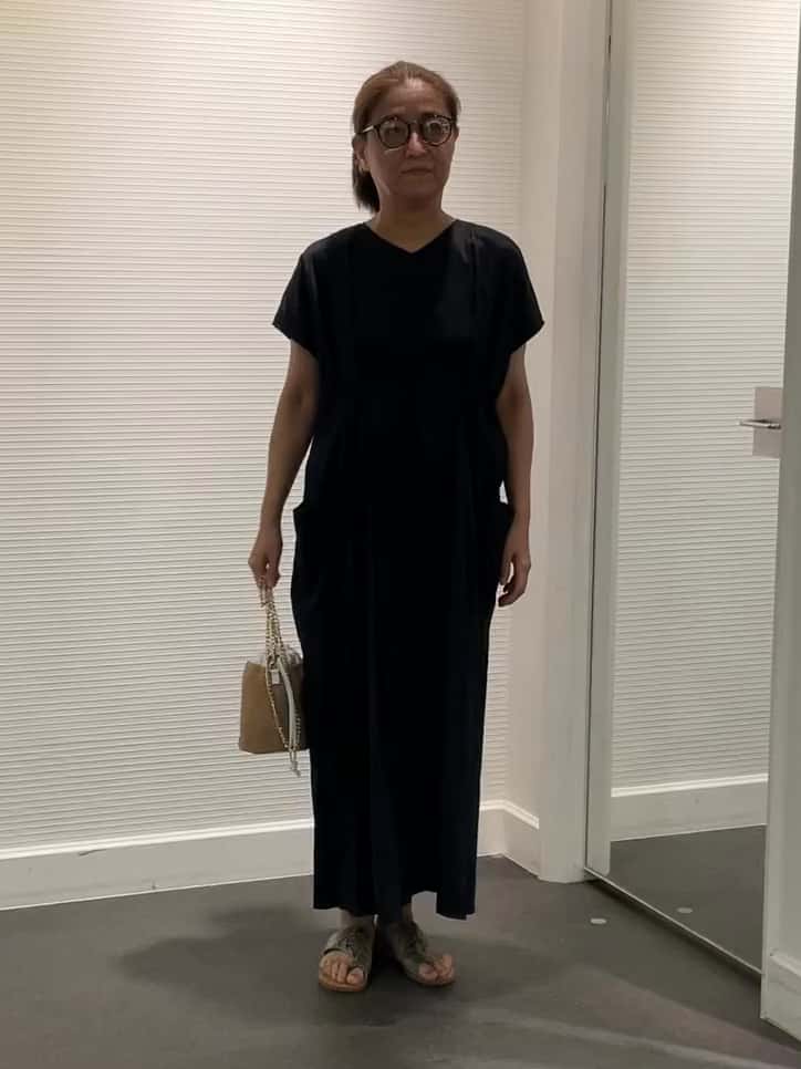 大きめのポケットがデザインのアクセントになり、一枚でさまになるワンピースです。