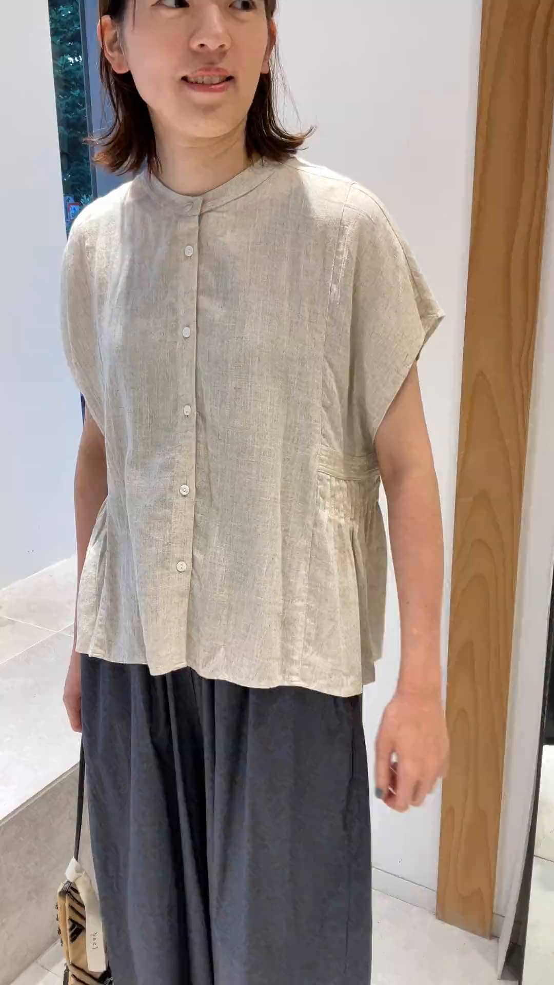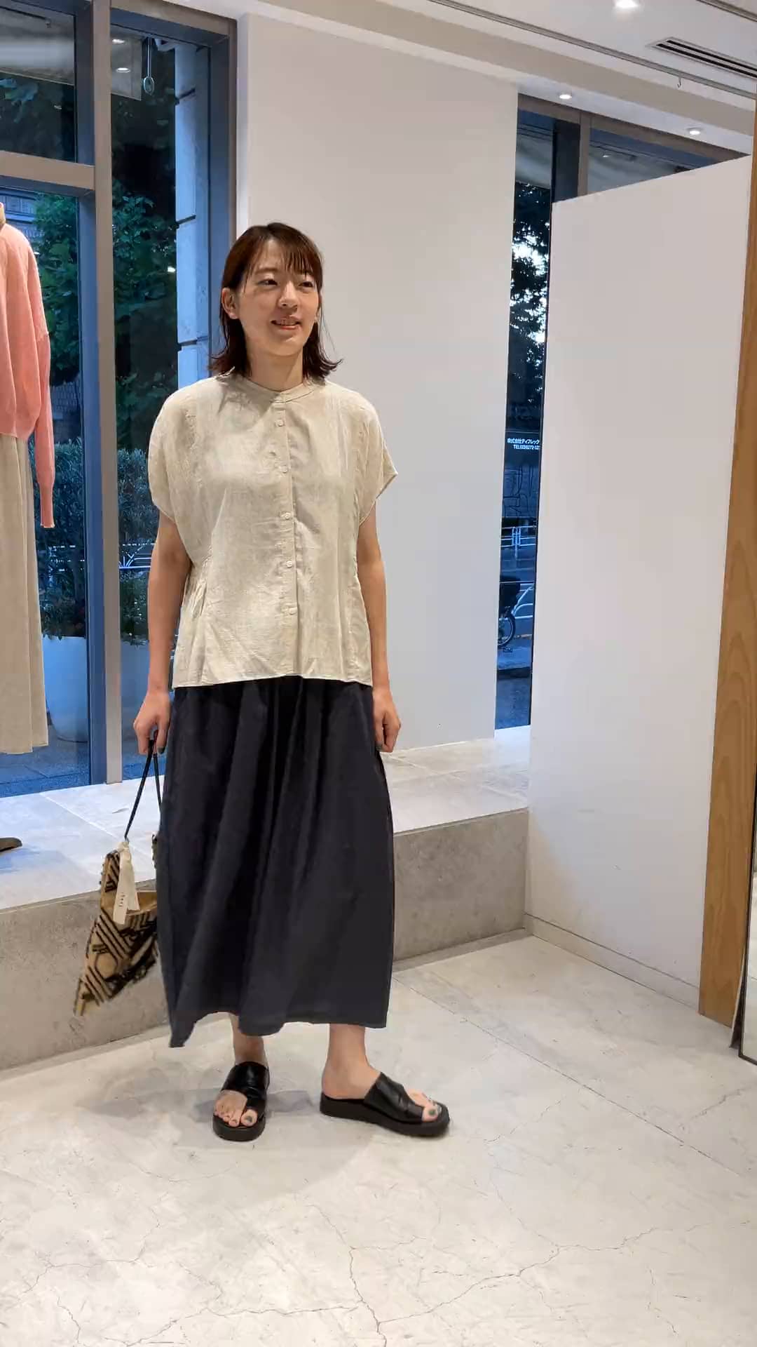 ナチュラルなスラブ感が魅力なブラウスとLOISIRでいつも人気なボトルシルエットパンツ。どちらも生地が薄いので真夏の暑さに快適な着心地です。週末のお出かけにリラックススタイルでぜひ。