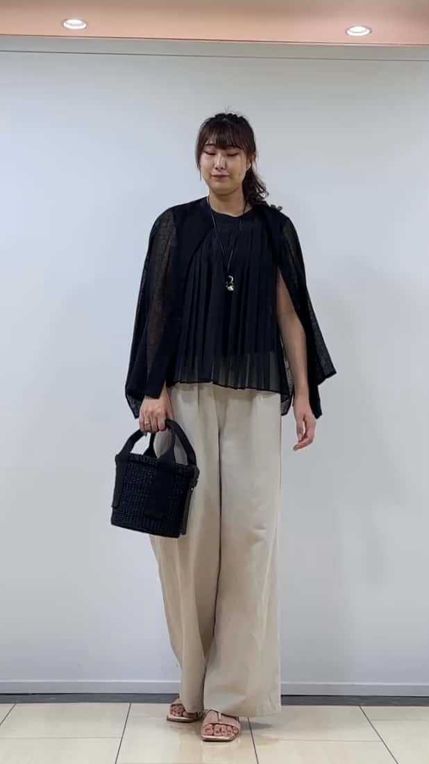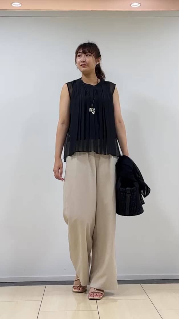着用感:透け感で涼やかさを演出できます。合わせるインナーの色で雰囲気を変えることができます。アーム部分は開きすぎないので、一枚でも安心してお使いいただけます。