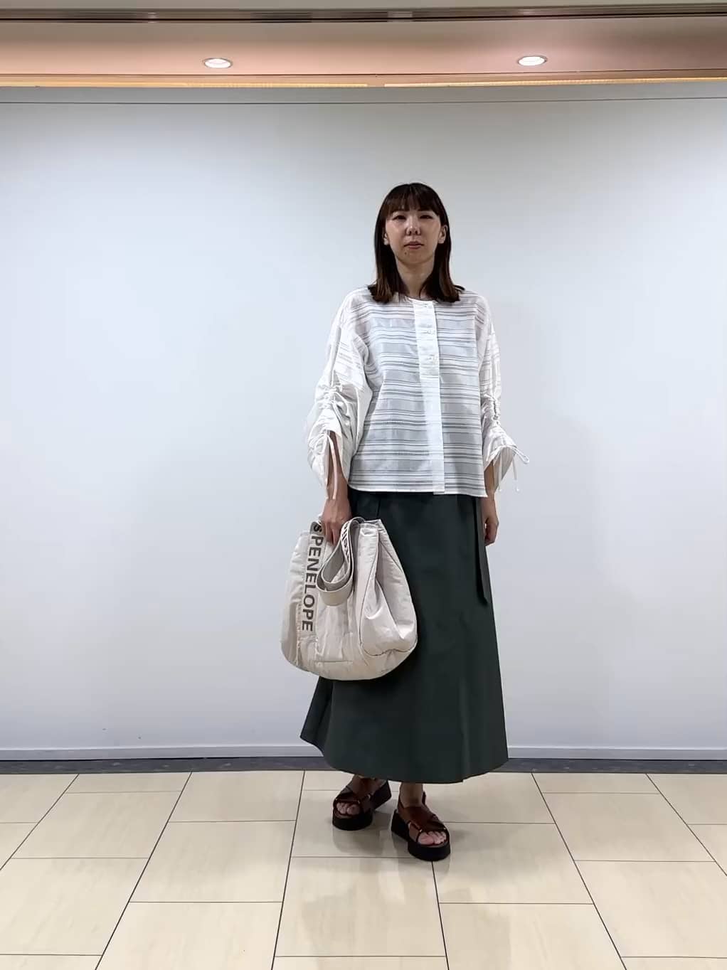 着用感:ボリューム感のあるシャーリングスリーブですが、素材が軽く柔らかいので張り感がなく気に入っています!