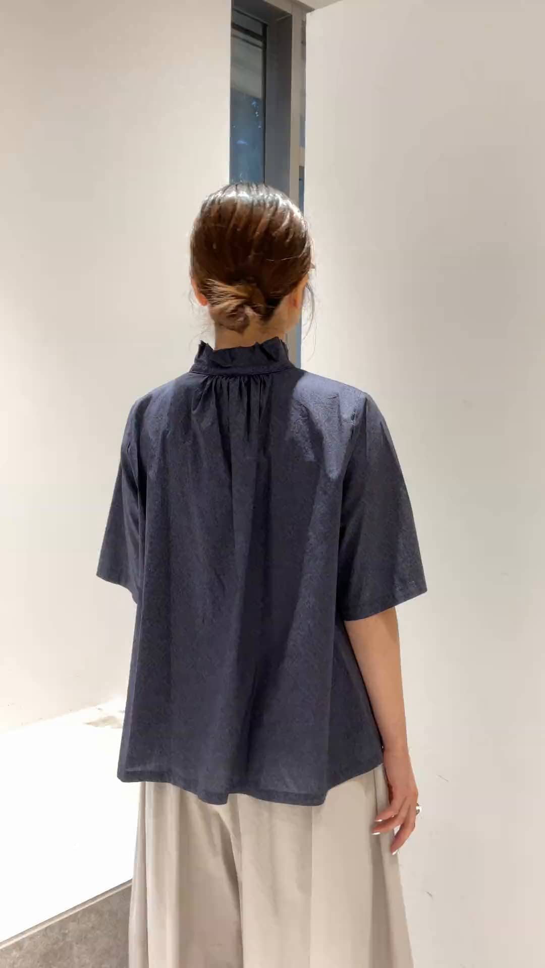 リバティプリントのブラウスはシルクライクな素材で軽くて着心地が良いです🙆