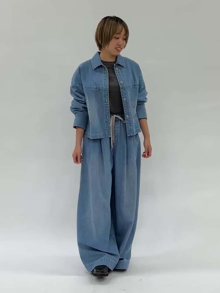 セットアップでも重たく見えず、ブルーの色味も爽やかで◎