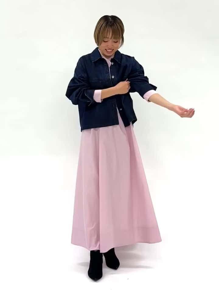 やわらかなピンクのワンピースを合わせて、甘さ控えめの大人カジュアルに仕上げました。
