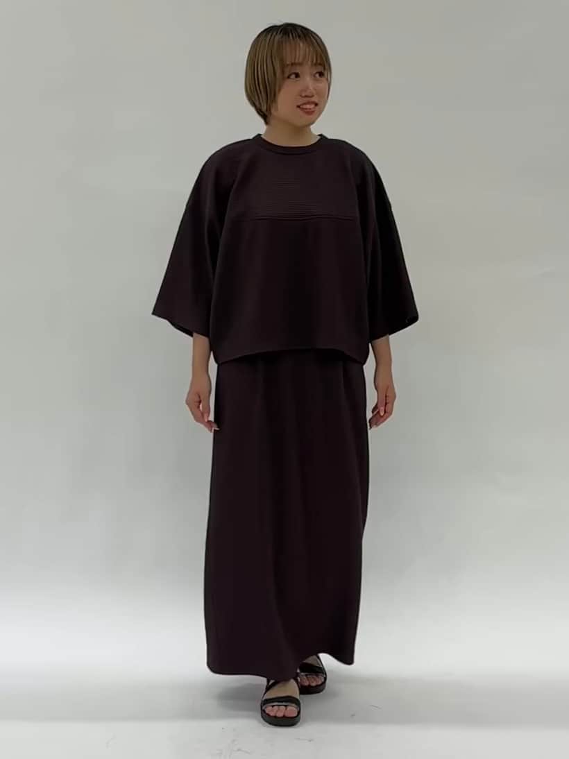 スカートはタイトめですが、生地の凹凸でラインが出にくく安心感があります。セットで着るのはもちろん、単品でも着まわせそうです!