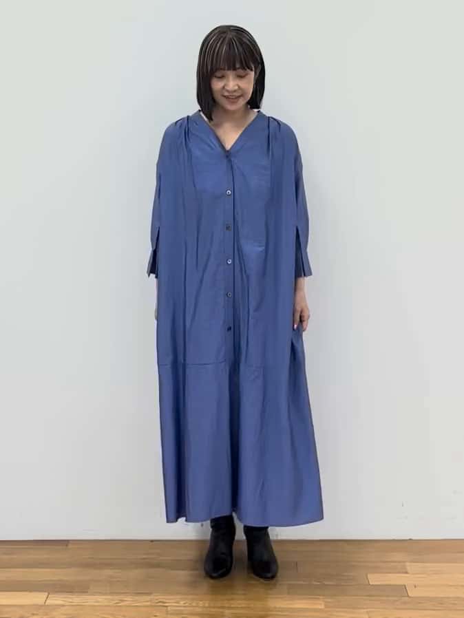 161cmで足首が見えるくらいかね丈感。袖は6分丈で手首が少し見えるので、抜け感もありつつ暑い時期にも涼しく着られます。