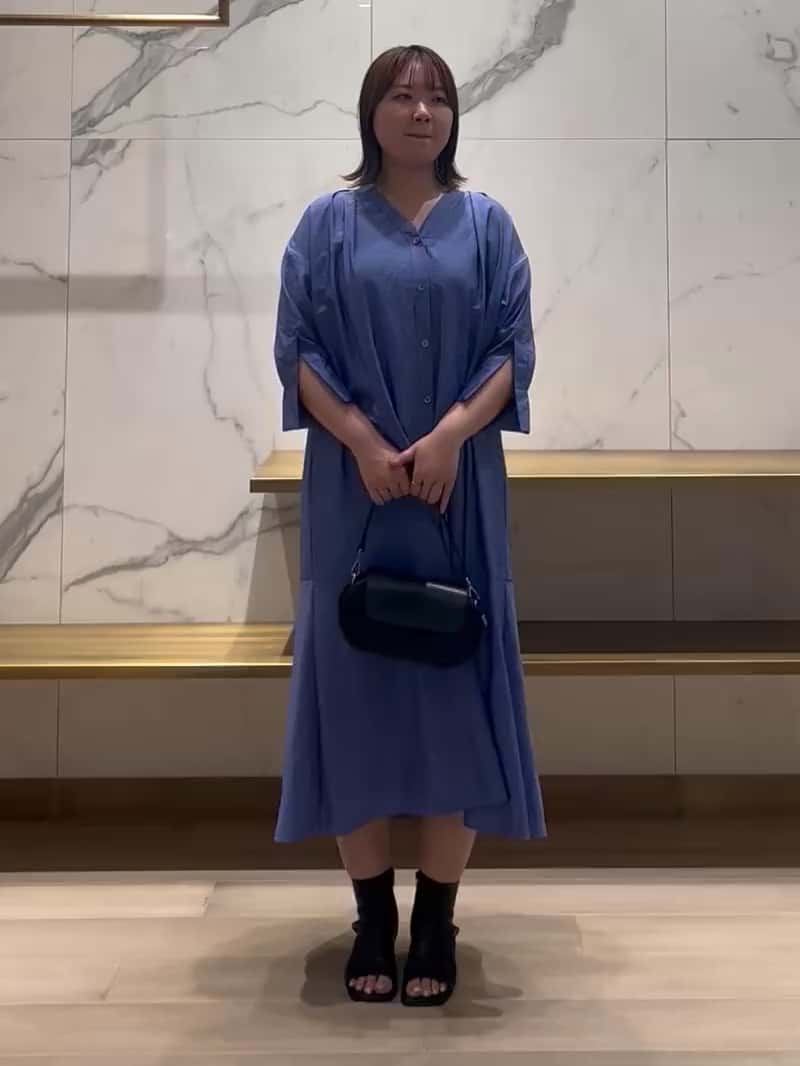 裾の切り替えから広がるフレアが動くたびに優雅に揺れ、全体の軽やかさを引き立てます。