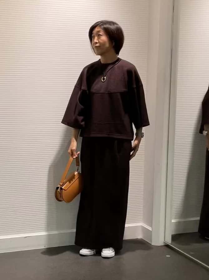スカートは程よいフィット感でラインを拾いにくく、足首が隠れ長めの丈感でした!