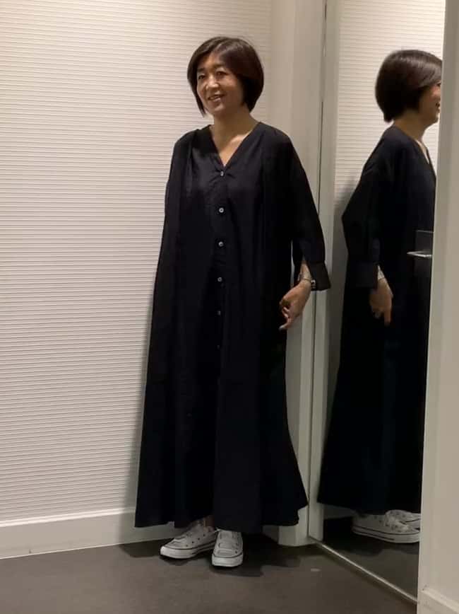 157cmで足首ジャストくらいの丈感でした!軽い素材感と程よいフレアで動くたび揺れて女性らしい印象に。