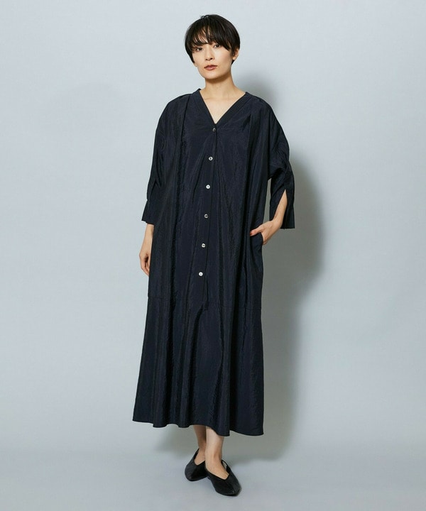 Vネックとバックタックで後ろ姿までスッキリ見えます。カフスの抜け感も夏に嬉しいポイントです。
