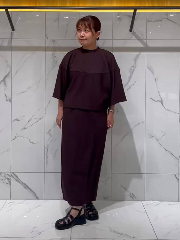 スカートはタイトながら凹凸のある素材感で安心感のあるはき心地。