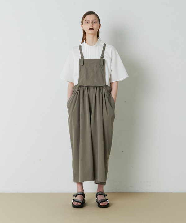 軽くて丈夫な素材で作った2WAYサロペを使ったコーディネートです。