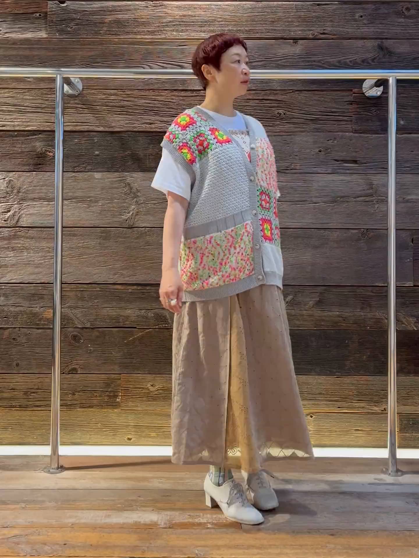 かぎ針編みやカラーネップなどパッチワーク風デザインが特徴。