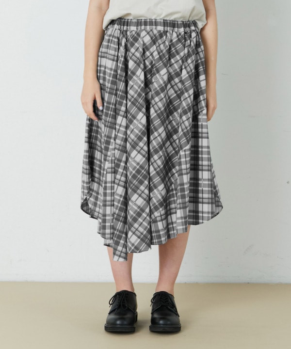 ボトムにはオリジナルチャックで作ったスカートを合わせて、コーディネートにメリハリを付けました。