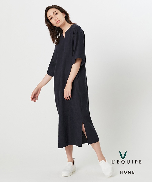 【HOME】リネンストレッチキーネックワンピース