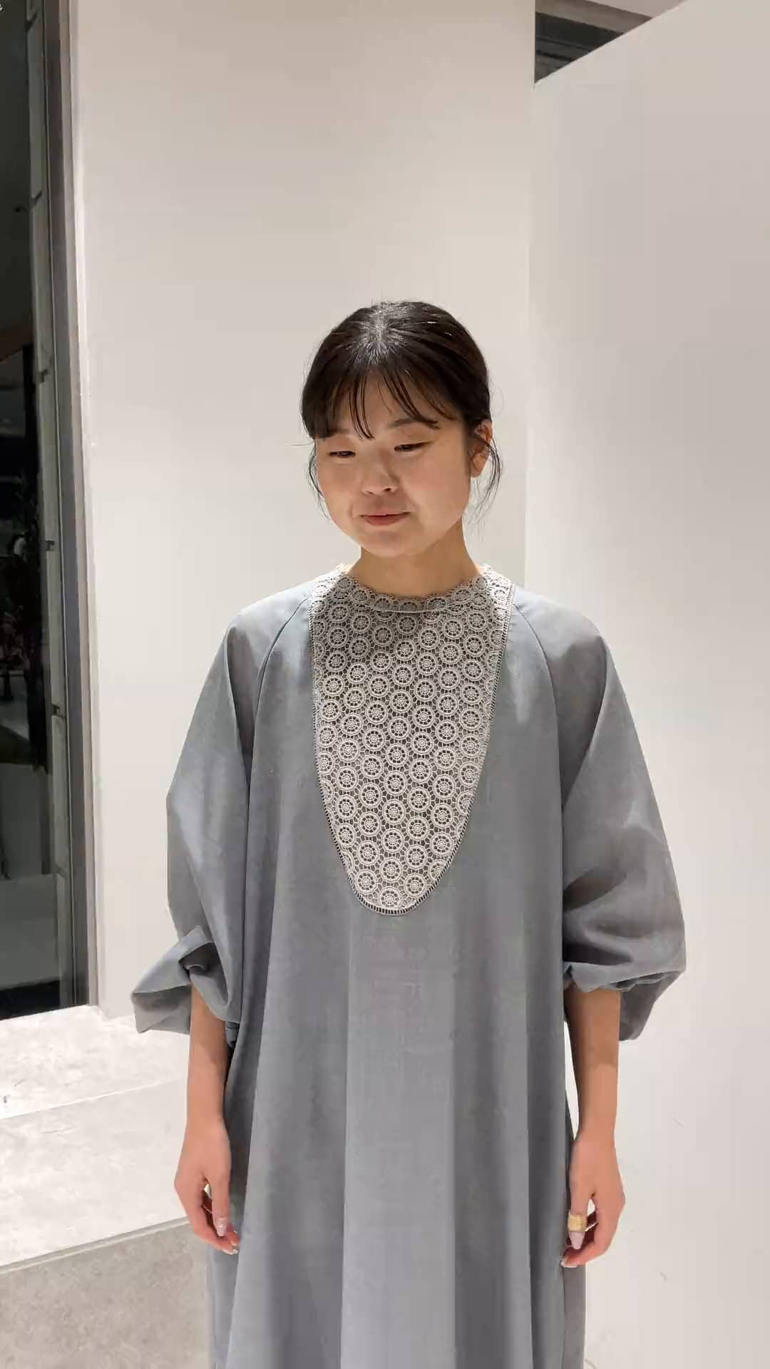 ハシゴレースで囲われたヨーク部分のケミカルレースがワンピースをより一層華やかに魅せています。ドライタッチなサマーウールでまだまだ暑いこれからにもオケージョン用にピッタリです✨