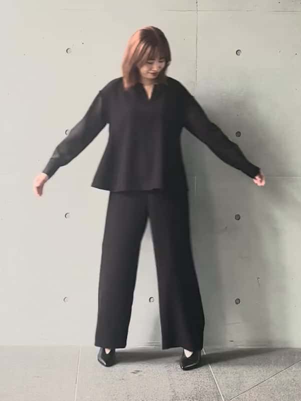 今回のトップスは、抜け感のあるTネックに身頃は裾に向けて広がりをもたせた
