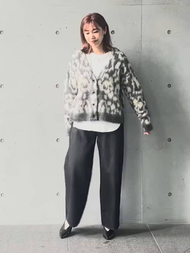 ワイドパンツとのバランスを取りながら、シンプルなインナーを重ねるだけで大人のリラックス感ある着こなしに仕上がります。