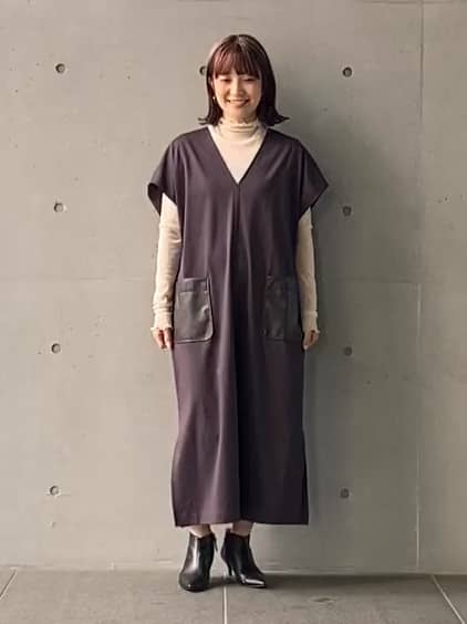 お持ちのパンツとのレイヤードスタイルもおすすめで、着回し万能なワンピースですよ。