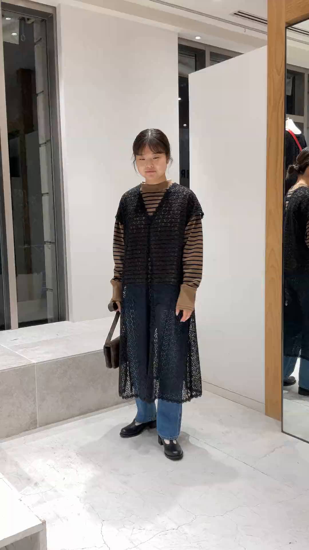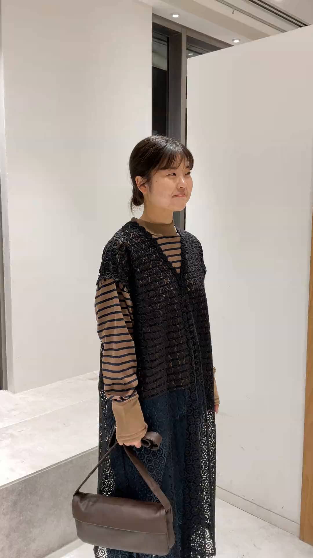 デイリーユースをイメージしてケミカルレースのワンピースをカジュアルに!ボーダーとレースの合わせもかわいいですね!