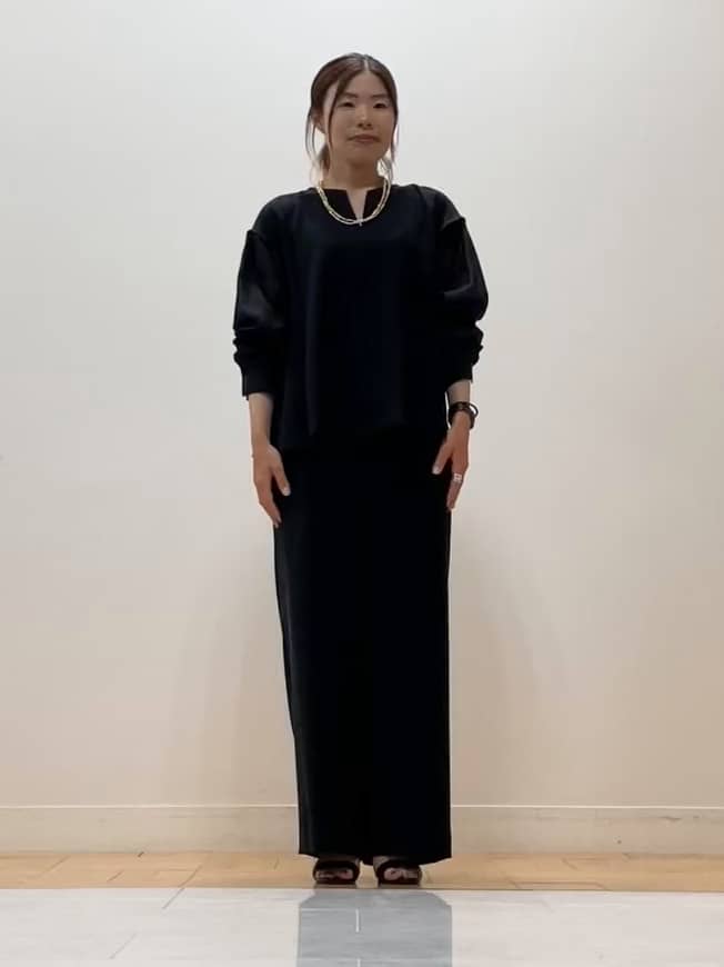 透け感のあるふんわり袖がポイントのブラウスに、すとんと落ちるワイドパンツを合わせたセットアップコーデ。軽やかで伸縮性のある素材なので、見た目のきれいさだけでなく着心地も快適です。チャコールのワントーンでまとめると、シックで大人っぽい雰囲気に。オンオフ問わず幅広く活躍してくれるスタイルです。