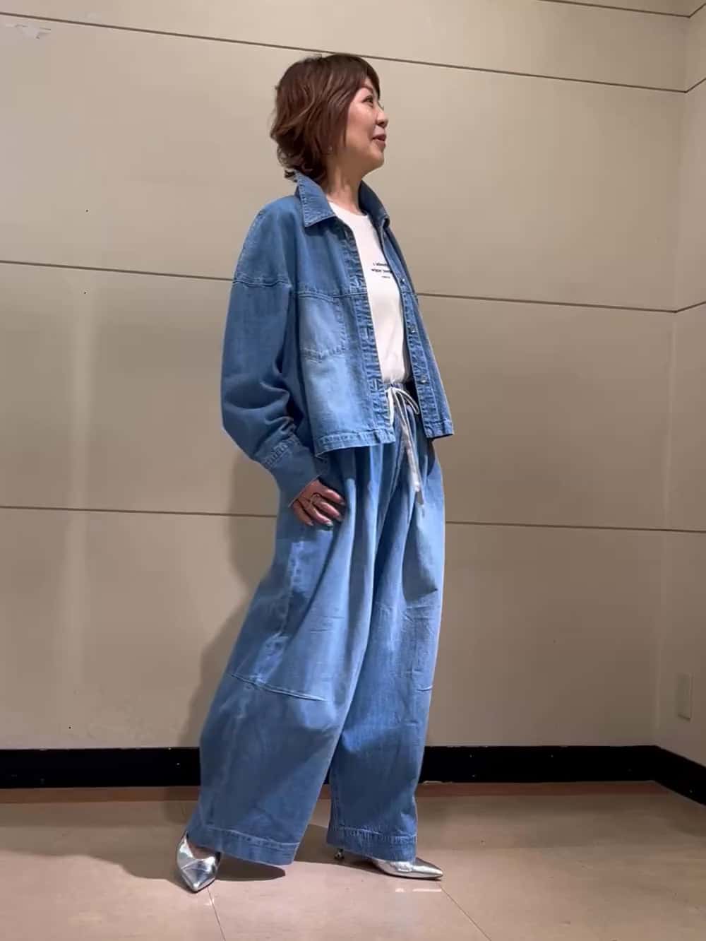 コクーンシルエットのワイドパンツもウエストはドロストで楽な履き心地です。