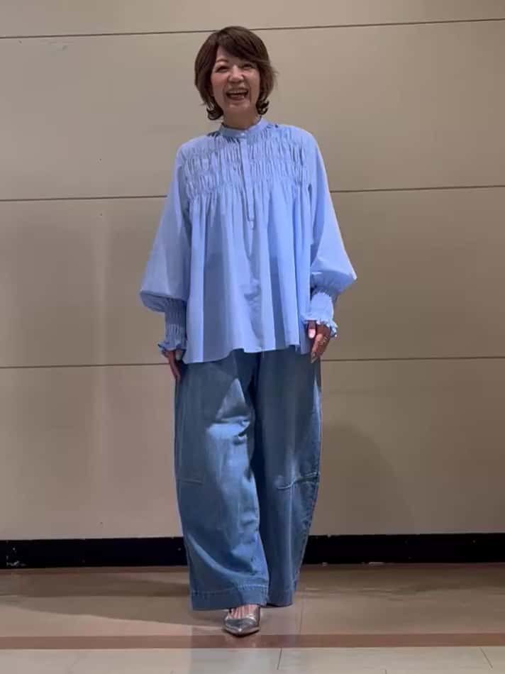 フリルの袖口はシャーリングで袖丈調節ができ便利です。ボトムにインしても◎54FFB580 2号②サックス リアルバイしました!54FFP190 2号①ブルー