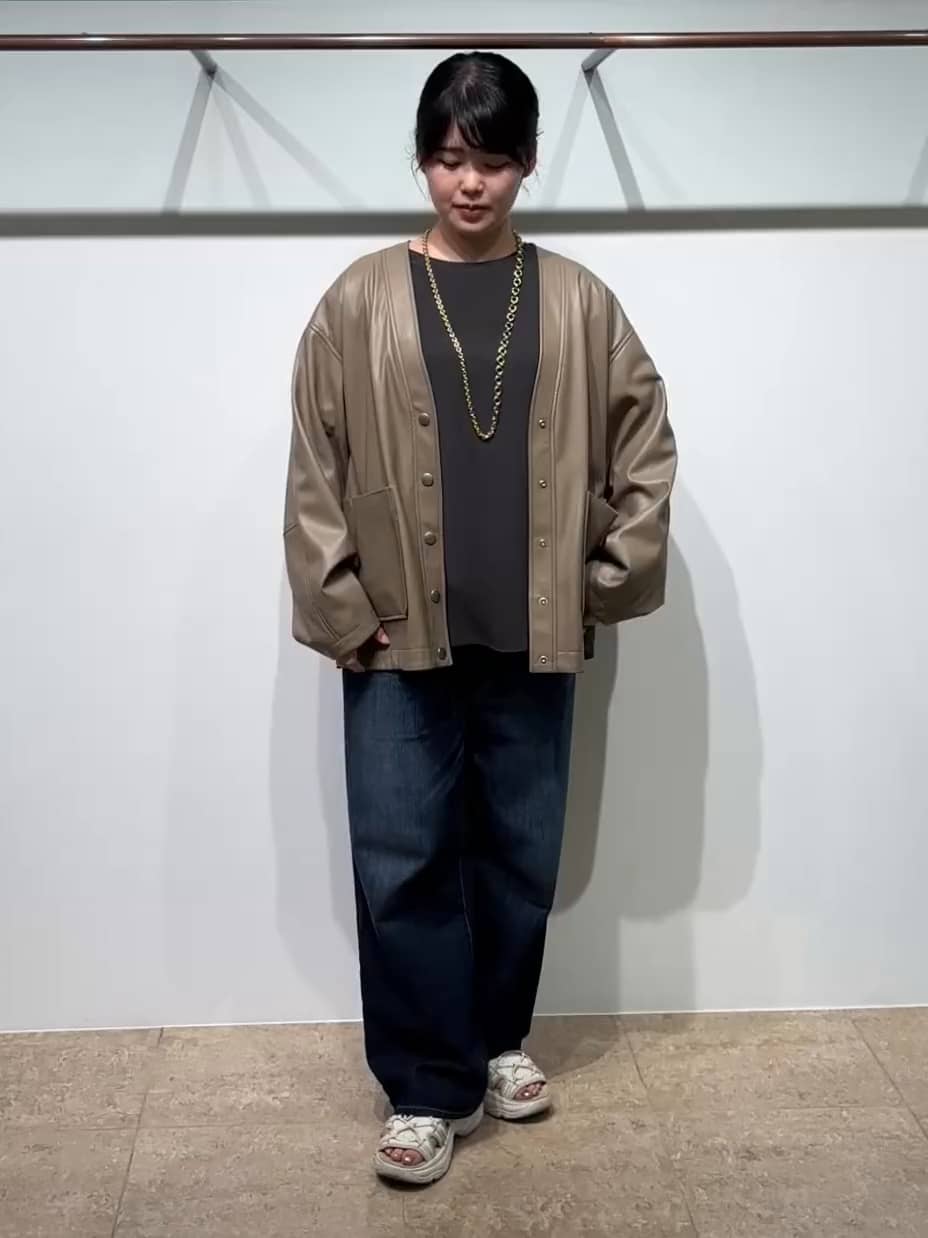 カーデのような感覚で気楽に羽織れるフェイクレザージャケット。柔らかい肌触りで軽いです。