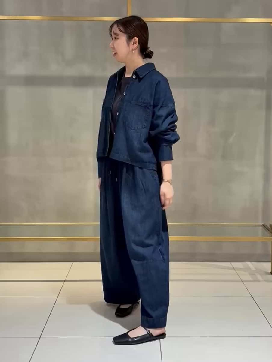 軽やかなコットンデニム素材のシャツブルゾンと、思い切ったボリューム感が今の気分にぴったりなワイドパンツをセットアップで。コンパクトな丈感のブルゾンとワイドシルエットのパンツが好バランスで、すらりとした着こなしに◎色違いのブルーはカジュアルに、ネイビーはマニッシュに着こなせます!