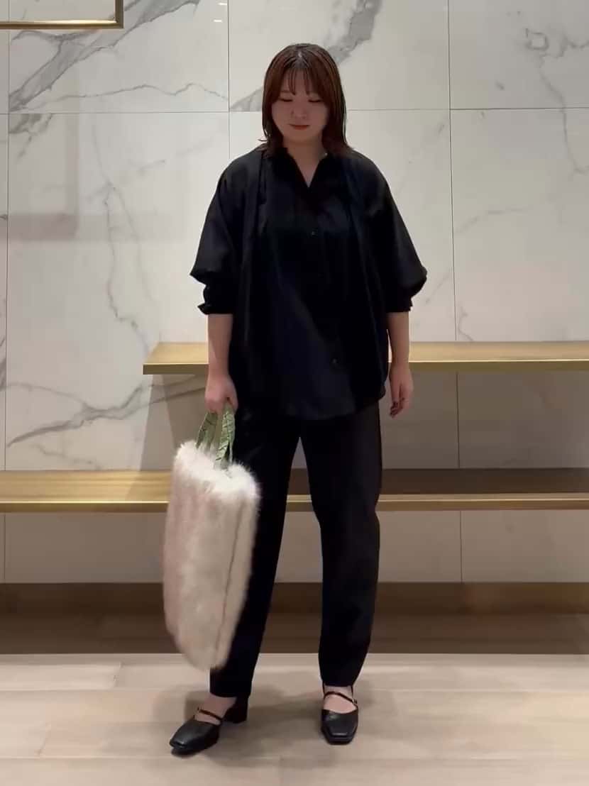 軽やかなシアーブラウスは、ドロップショルダーと変形ラグランスリーブで動きが出て、長め丈がパンツとのIラインを美しく演出。テーパードパンツはヒップ周りにゆとりを持たせつつ裾に向かって細くなるシルエットで、ストレスフリーな着心地ながらすっきり見え。ブラックでまとめることで、シンプルながら上品な印象に仕上がります。