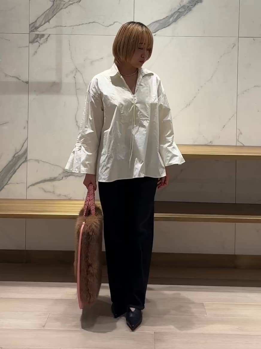 軽やかなタフタ素材で、着るだけでシルエットにモード感のあるデザインブラウスはクリーンで大人っぽい雰囲気に、ほんのり甘さもプラスしています!ブラックのストレッチデニムと合わせて、こなれ感のあるカジュアルスタイルに仕上げました。ストレッチがあるので履き心地抜群です!