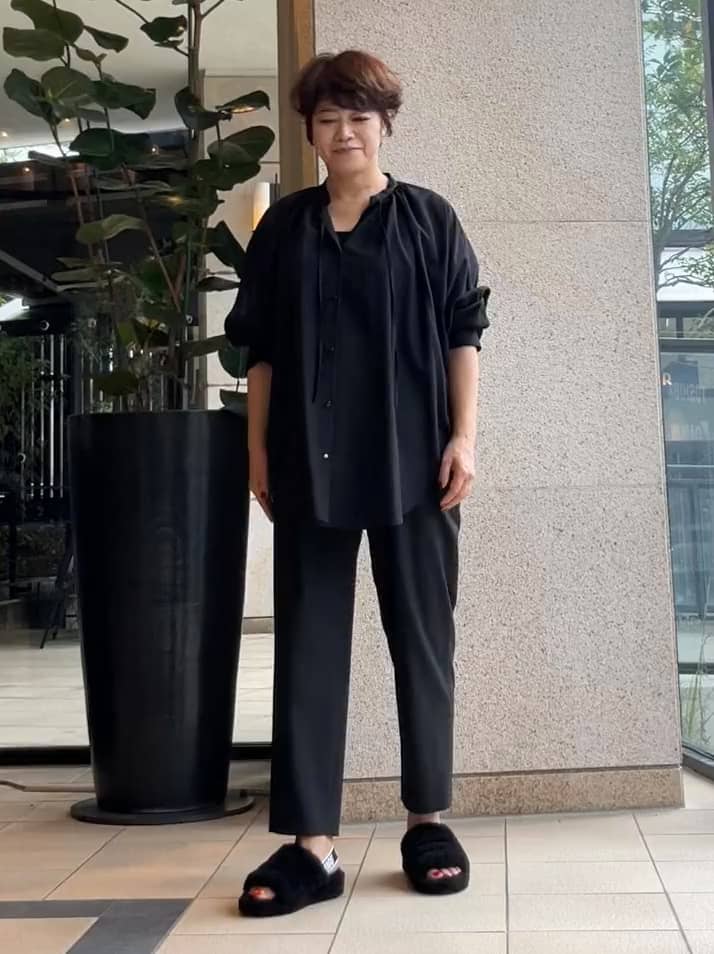 ブラウスとテーパードパンツのシンプルスタイルです。