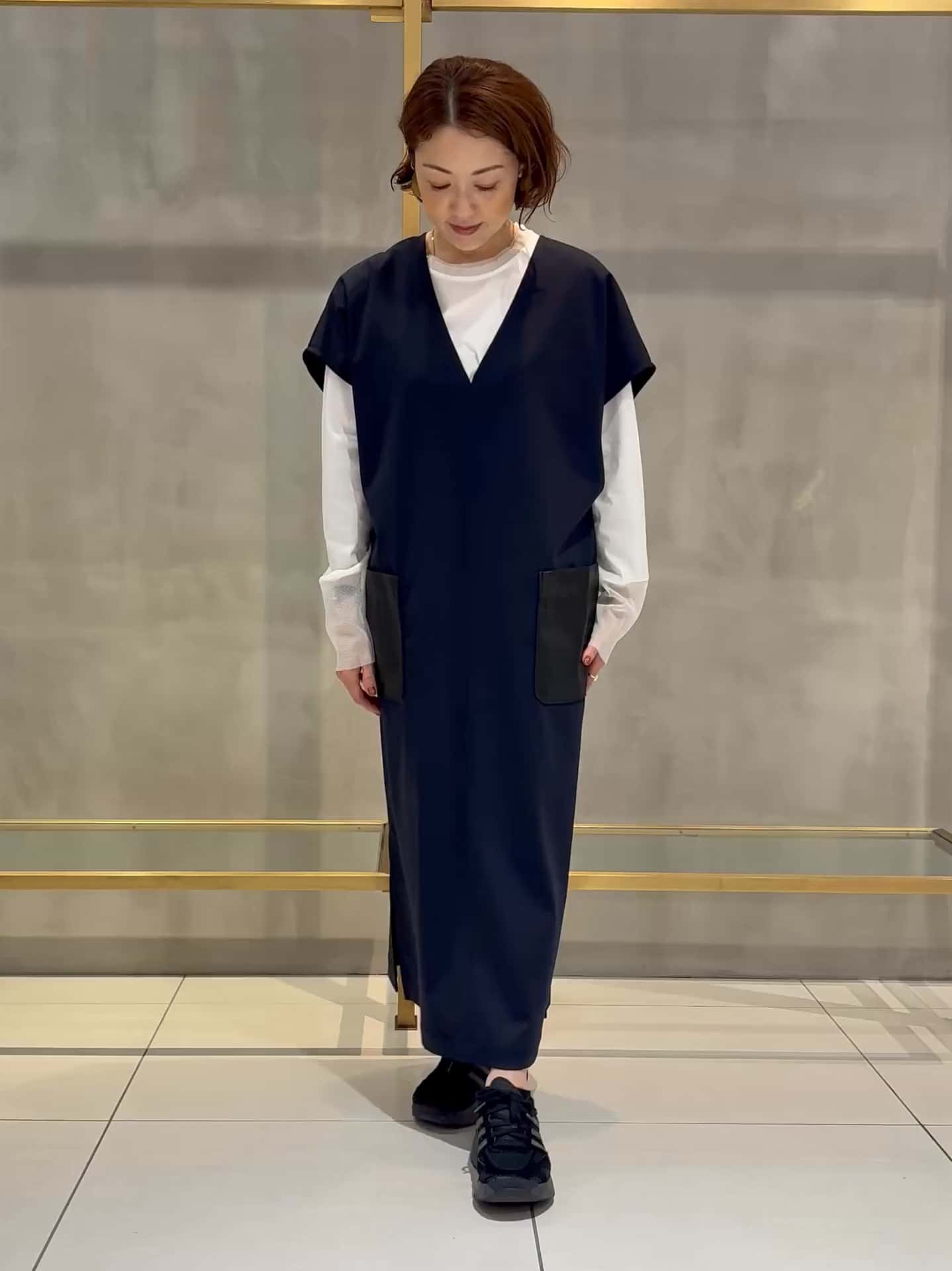 肩から裾までスッと伸びるIラインが美しいジャンバースカート。深めのサイドスリットで動きやすく、レイヤードスタイルも楽しめる一枚です。インナーのカットソーは大人気のfeeriqueのメッシュドッキングプルオーバーです!様々なアイテムとレイヤードして楽しめるので1枚あると便利です!