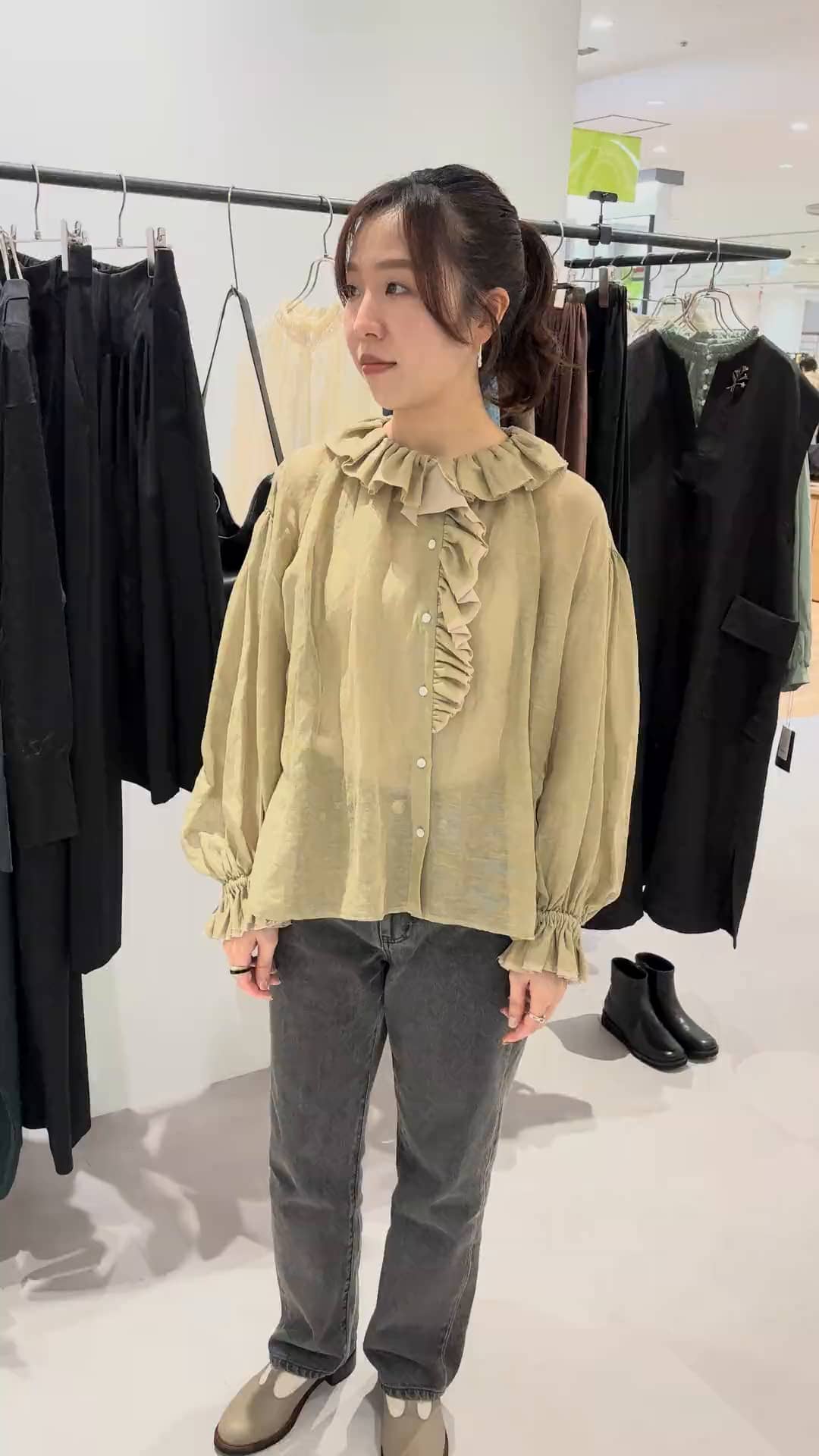 シアーな素材感のブラウスなので、まだ残暑の残る時期はインナーを着て一枚で、さらに秋冬はニット合わせなど、様々な着こなしができるアイテムです✨