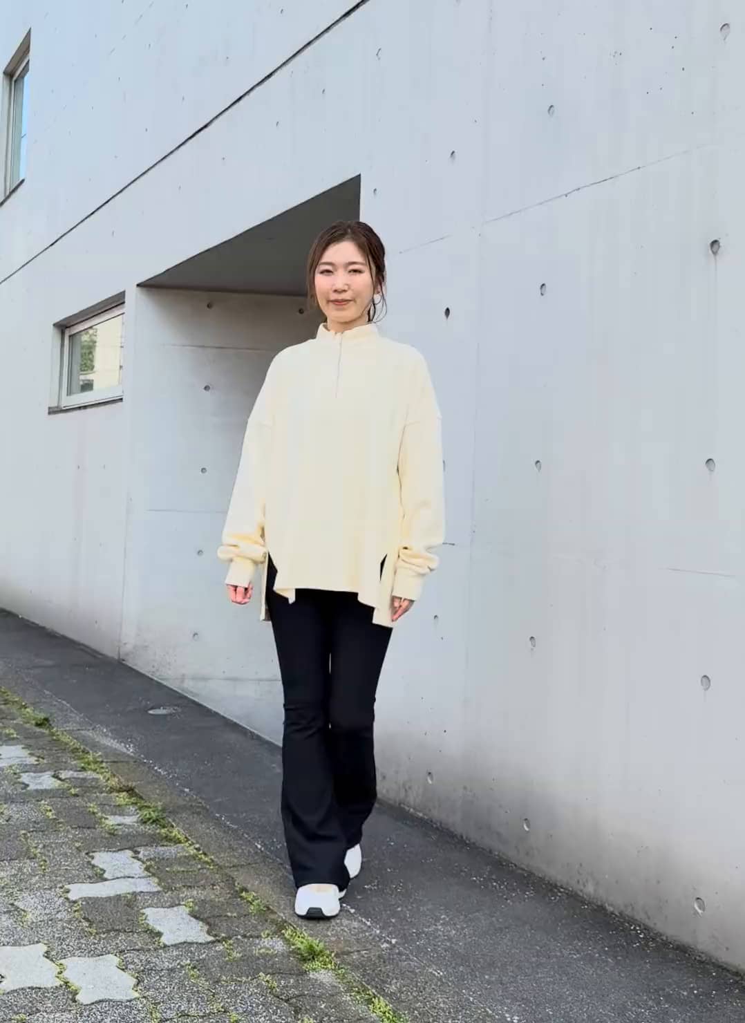 トップス:F(フリー)サイズパンツ:0(S~M)サイズほどよい高さのスタンドカラーが、とても着心地が良いです。ジップ仕様だから着脱もスムーズで、忙しい朝にもサッと着られる便利な一枚です。