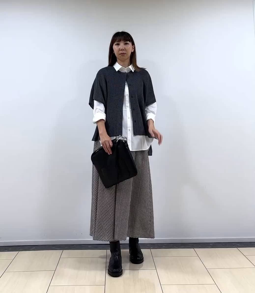 着用感:落ち感のある素材で、広がりすぎないフレアがとても綺麗です。