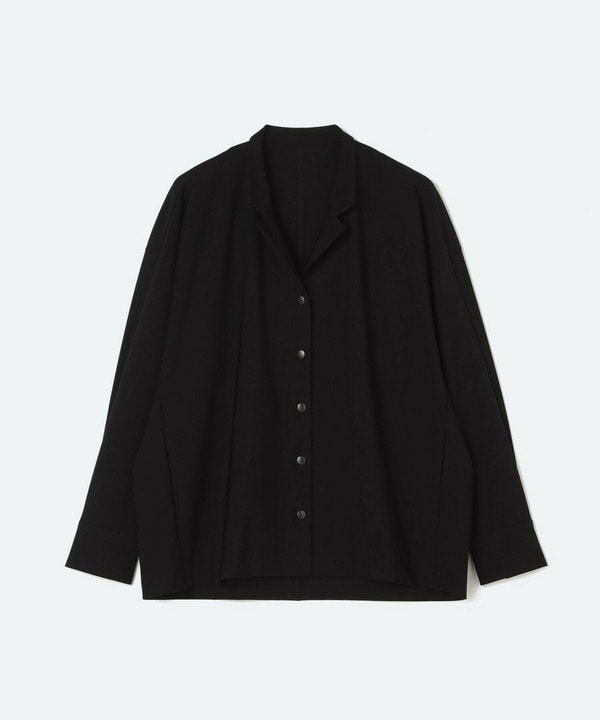 小さめのテーラーカラーにもなりますし、立ち襟にするとよりモードな印象でお召しいただけます。