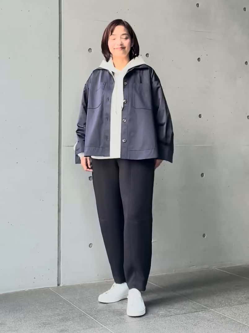 ジャケットとして着ているブラウスはハリ感があるが、ストレッチが効いていて着やすいし軽いです。中のインナーが厚手でも着れそうだし、合わせやすそうです。サイズは少しゆったりしている。